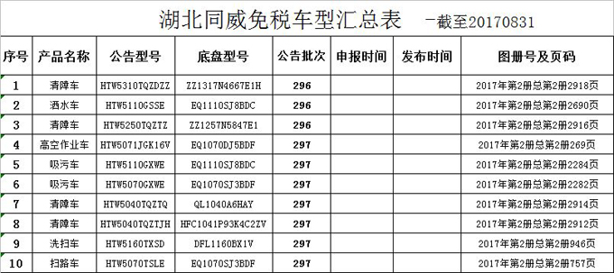 湖北同威汽車公司設(shè)有固定裝置免稅車輛圖冊(cè)匯總